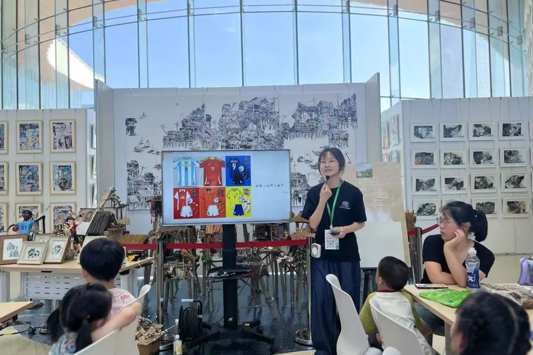 8月17日,南通开发区公共文化中心一楼中庭洋溢着童真与创意的碰撞——由南通市经济技术开发区图书馆联合莫梵少儿美育中心主办的“足球小子”艺术装置手工活动在此举行。部分优秀作品已入选同期举办的“未来计画”展览,展期持续至8月底。