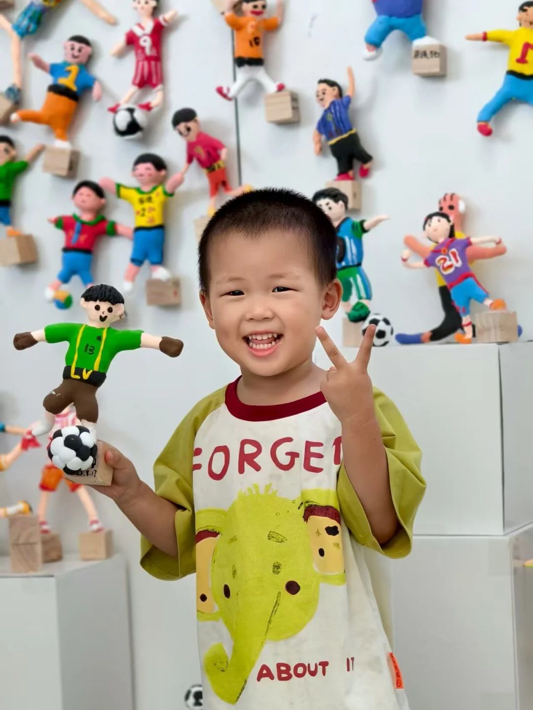 活动的高潮是作品展示环节。孩子们将自己的“黏土足球小将”粘贴在特制的展示板上,共同组成了一支充满童趣的“梦想之队”。每一件作品都凝聚了孩子们的创意与热情,展现了他们对足球运动的热爱和对家乡的支持。家长们举着手机记录下孩子此刻的模样,镜头里既有沾着黏土的小手,也有因作品被肯定而发亮的眼睛。这些充满生命力的作品经筛选后,会直接进入“未来计画”展区进行展出,形成跨越年龄的艺术对话。展览将持续至8月底,市民可免费观展,感受童趣与艺术交融的独特魅力。