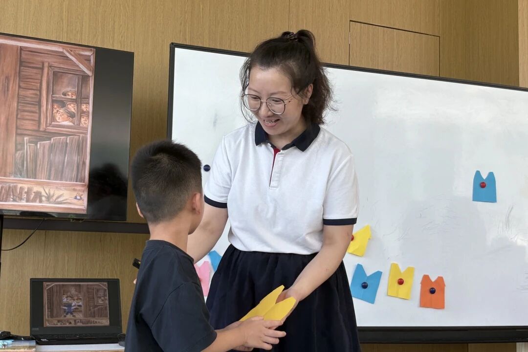 活动伊始,主讲人王玉惠老师以亲切的语调、生动的表情,将小朋友们带入约瑟和爷爷的奇妙世界。一条毯子,随着约瑟长大,渐渐变旧,却在爷爷的手中一次次“重生”——变成外套、背心,甚至是一颗纽扣。爷爷的巧手与智慧,不仅让旧物焕发新生,更让在场的每一个孩子和家长感受到浓浓的爱与珍惜。