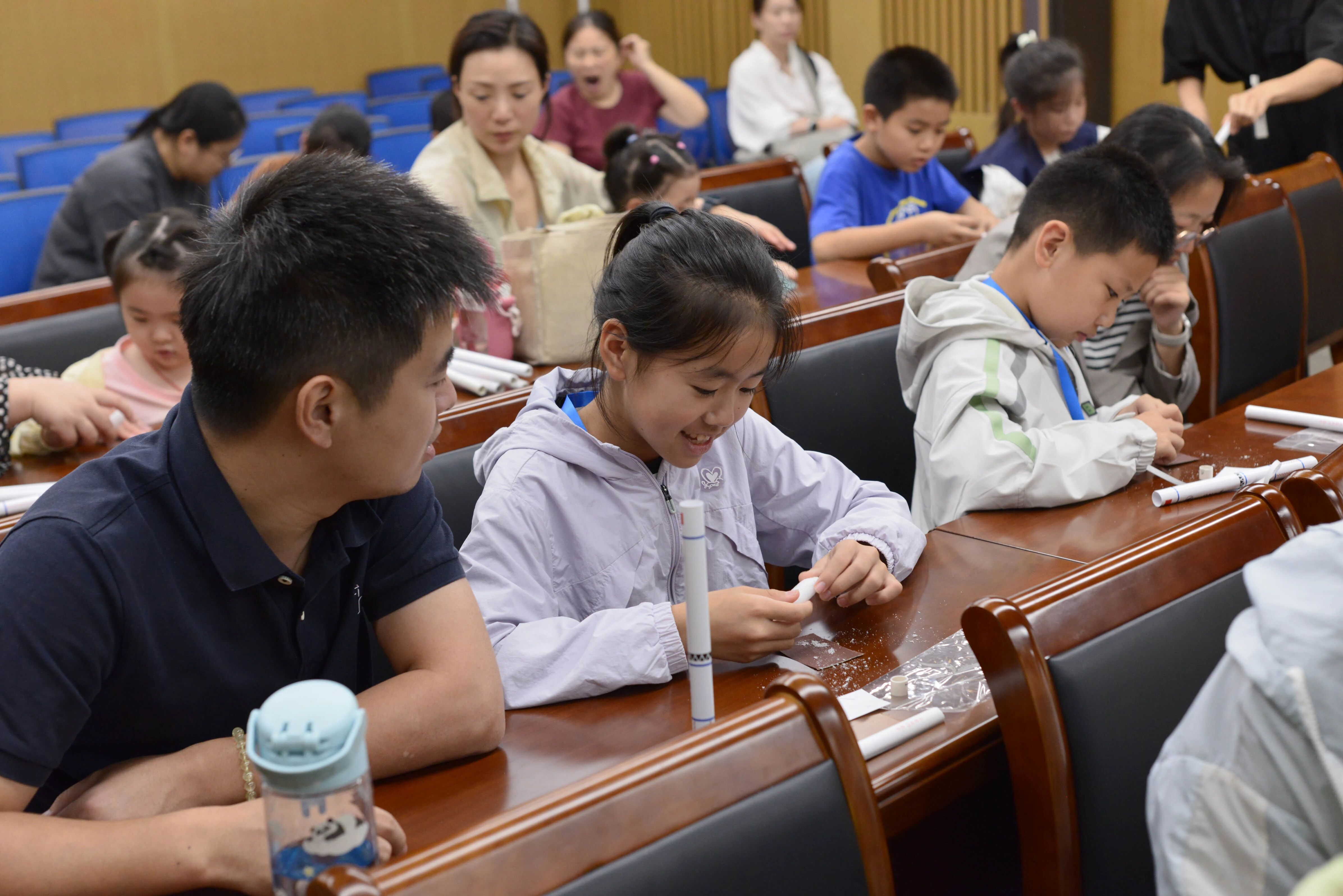 DIY火箭制作环节将现场气氛推向高潮。孩子们在吴老师和馆员的指导下,仔细拼装箭体、安装尾翼、调整重心,一步步将零件组装成属于自己的火箭模型。专注的表情、默契的协作,让整个活动现场充满了创造的喜悦。