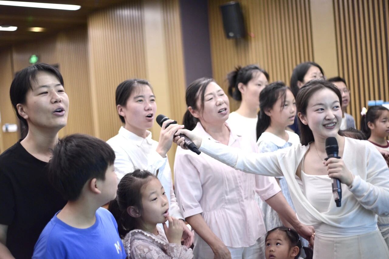 活动最后,在张老师的指挥下,所有家庭共同演绎了学习成果。孩子们清脆悦耳的歌声与家长们醇厚深情的演唱相互交融,将歌曲中蕴含的感情展现得淋漓尽致。这一刻,音乐成了连接心灵的纽带,让爱的暖意在歌声中静静流淌。