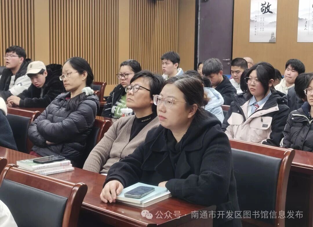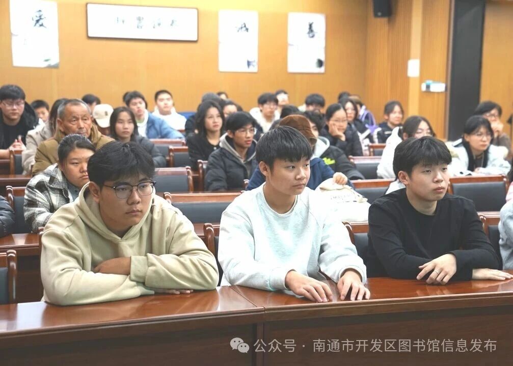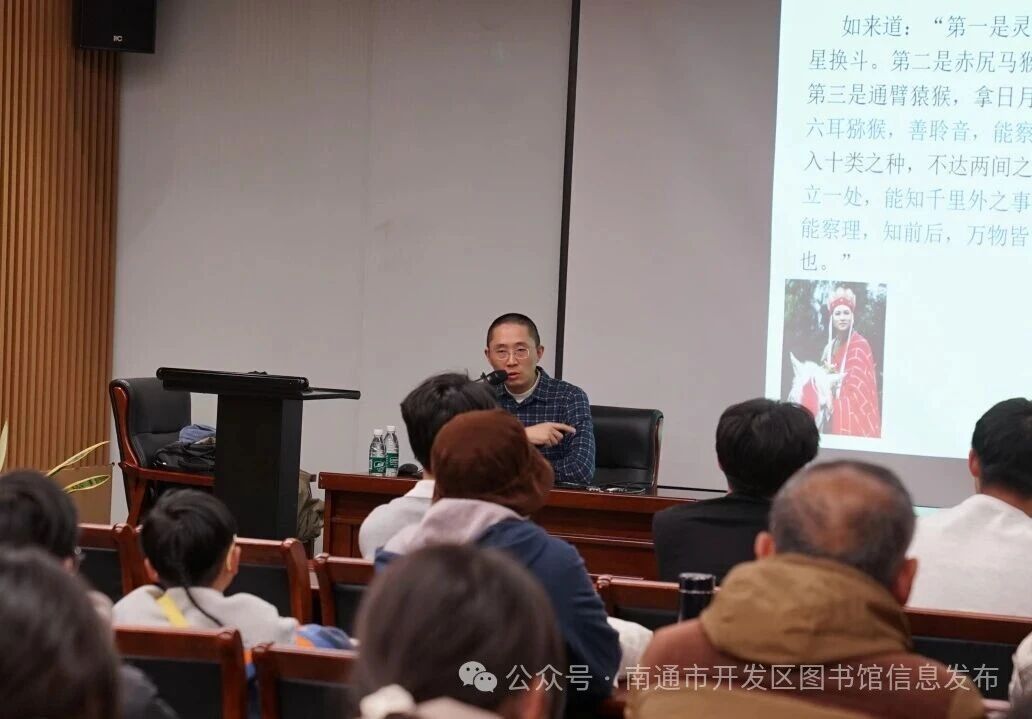12月6日,南通市经济技术开发区图书馆“中华传统文化百部经典”系列高端讲座如期开展,特邀泰州学院人文学院田鹏老师,以《四大名著中的“智者预言”》为题,为读者开启了一场贯通文学、哲学与历史的文化深谈。讲座聚焦经典文本的深层解读,引领读者透过文字表象,探寻中华叙事传统中蕴含的智慧结构与精神密码。