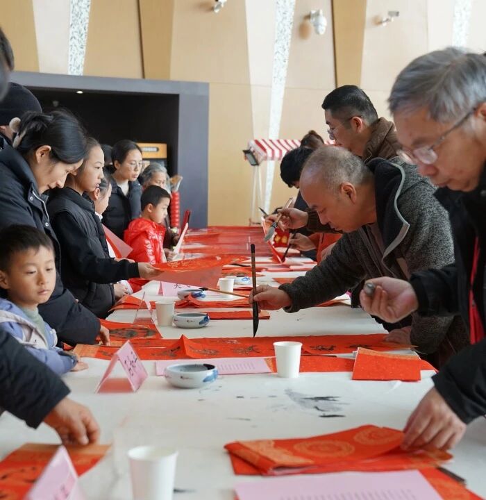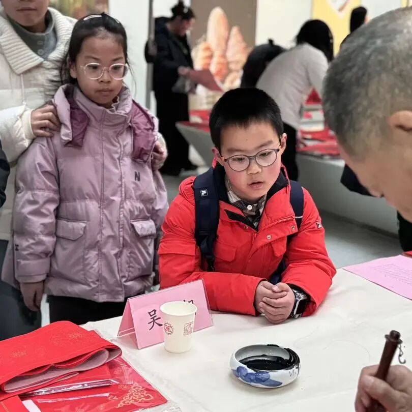 2月4日下午,正值立春,系列活动第二站在开发区公共文化中心温情开启。活动邀请倪锋、张培杨、吴伟、吴飞、张凯、龚平、吴水朝、石和平等八位开发区本土书法家现场挥毫,为200余名读者书写马年春联与福字。书法家们各展技艺,楷书端严厚重,行书飘逸灵动,每一笔一划都饱含对新春的期许。