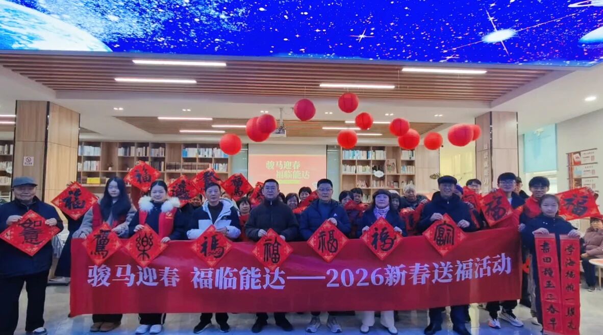 为持续传递新春祝福,弘扬中华优秀传统文化,2026年2月4日至6日,由南通市经济技术开发区社会事业局、南通市经济技术开发区总工会主办,南通市经济技术开发区图书馆承办的“骏马迎春 福临能达”新春送福系列活动第二至第四站接续开展,分别走进开发区公共文化中心、中兴街道民主港社区书吧和能达大厦,将饱含年味的墨香与暖意送到不同群体身边。