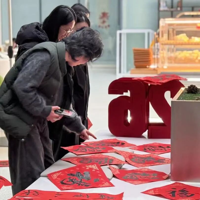 居民们兴致勃勃地围拢欣赏,挑选心仪作品,脸上洋溢着幸福笑容。淡淡的墨香与火红的纸笺交织,让传统年味在书香空间焕发生机。此次活动不仅送去新春祝福,更搭建起图书馆与社区居民的文化交流桥梁,获得一致好评。